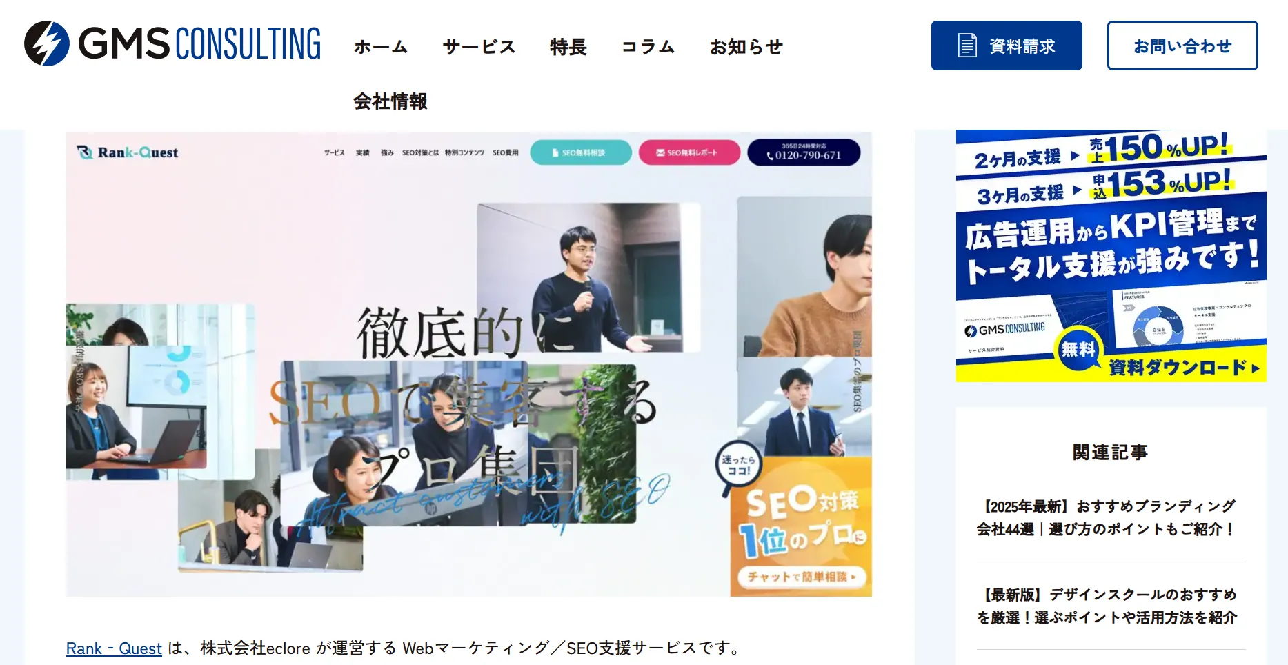 コラム 株式会社GMSコンサルティングの記事に当社が掲載されました。 2025.12.02 株式会社GMSコンサルティングのコラム記事「東京都のおすすめSEO対策会社をプロが厳選|依頼してはいけない業者の特徴も解説【2025年最新版】」に当社が掲載されました。 ぜひご覧ください! Tweet Share Hatena コラム