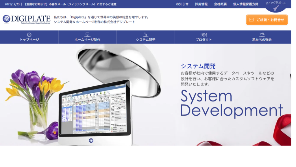 | 特徴 | デザインからシステム開発、サーバー管理、Web戦略までワンストップで対応 |