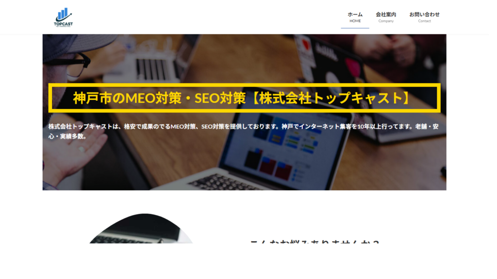 | 株式会社トップキャスト | 神戸市兵庫区 | SEO対策 | 要問い合わせ | 要問い合わせ | MEO対策にも対応し、神戸で10年以上の集客実績がある |