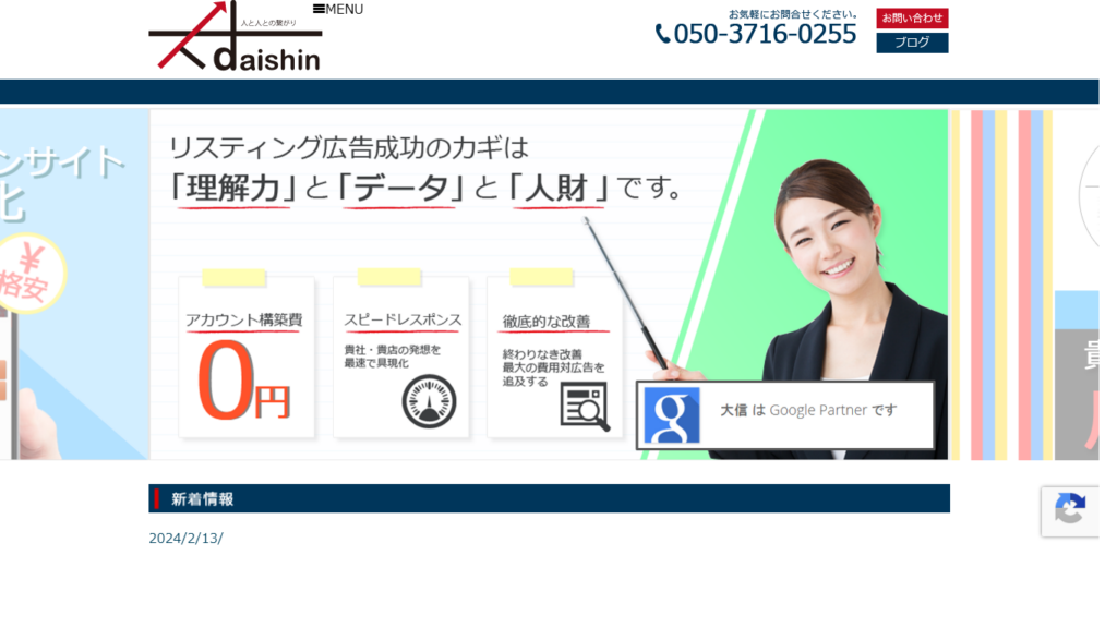 成果報酬型SEOサービスを検討したい場合に候補に入るのが、株式会社大信SEです。尼崎市を拠点にコンサルティングも行っており、初期のリスクを抑えながら集客施策を進めたい企業に向いています。