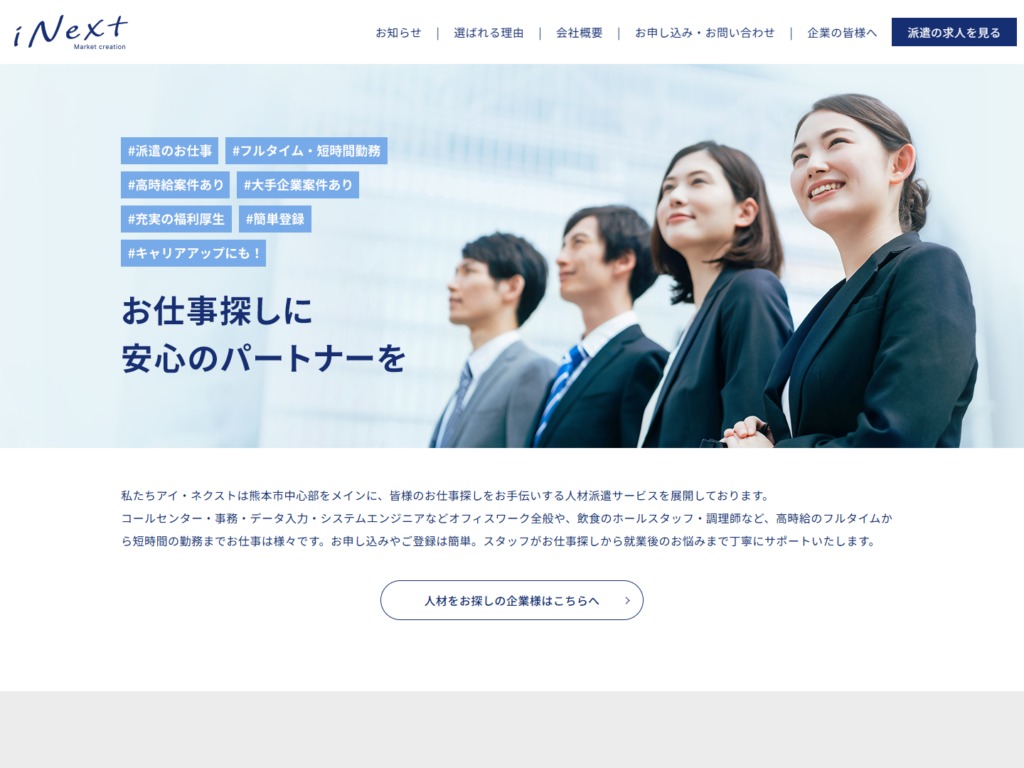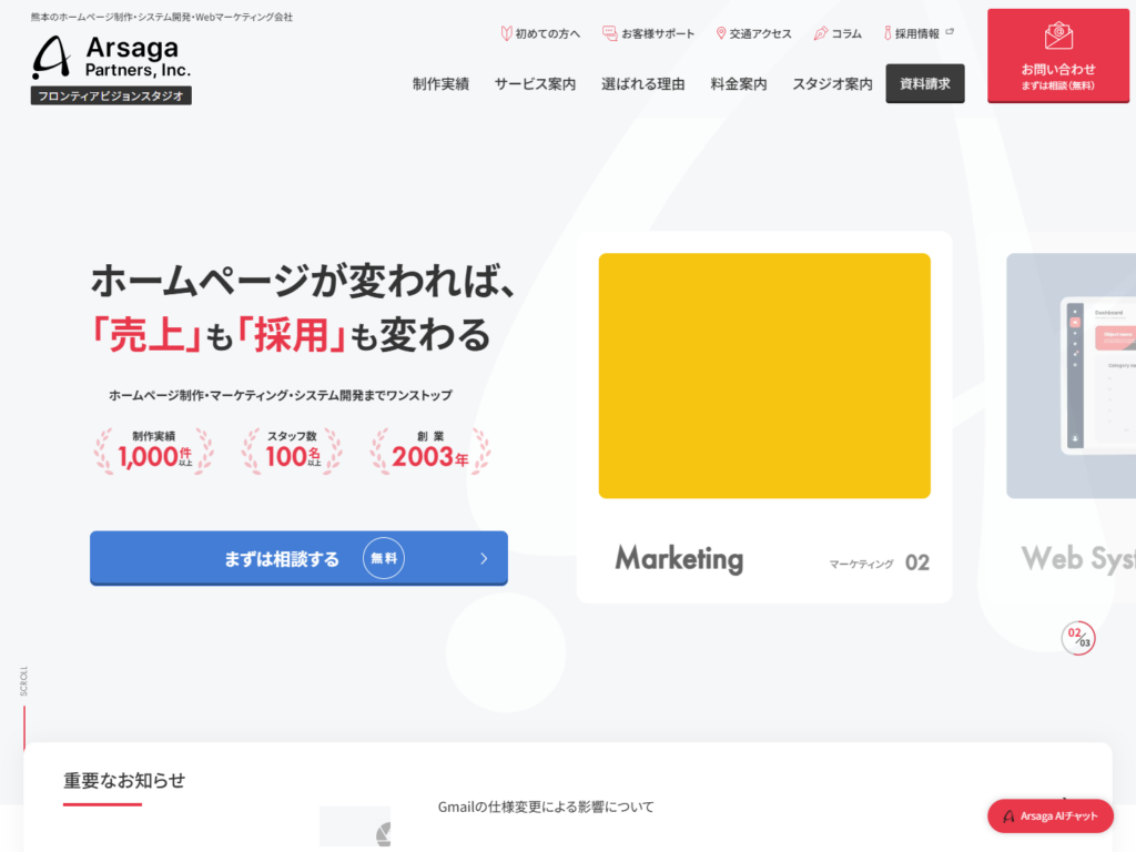 サイト制作から運用改善まで伴走する熊本の老舗支援を前面に出しており、運用サポートの手厚さと老舗の安心感を両立したい企業なら比較しやすい候補に入ります。