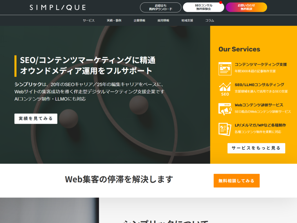 - ビジュアル訴求も大切にしながら検索流入を伸ばしたい企業なら候補に入れやすい一社です。
