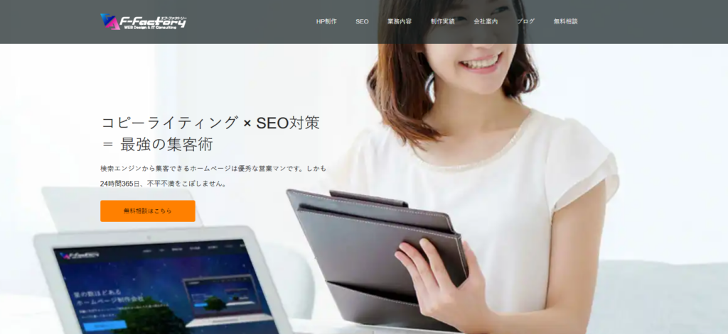 | 5 | 株式会社エフ・ファクトリー | 豊富な実績 | 三重県名張市春日丘1番町129番地 | ホームページ制作・ネットショップ構築にも対応 | WPパッケージプラン:385,000円〜 | SEO対策を本格的に始めたい企業 |