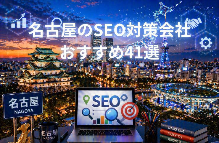 名古屋・愛知周辺で紹介されているSEO対策会社41社を、選び方、費用相場、口コミ、会社別の概要・実績・料金という順で整理します。