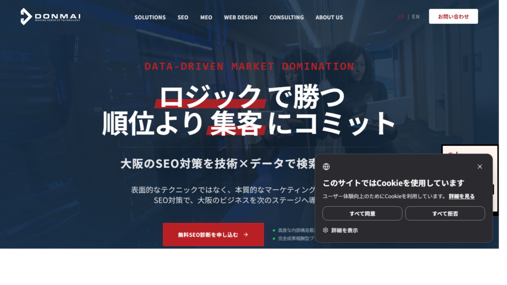 | ドンマイ株式会社 | 〒530‑0001 大阪府大阪市北区梅田2丁目2‑2 | 成果報酬型の相談先として比較しやすい | 月額固定型SEO:15万円~ 成果報酬型SEO:3万円~ Webコンサルティング:30万円~ |