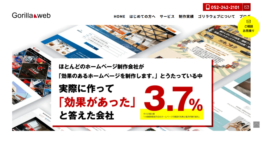 | 株式会社ゴリラウェブ | 〒460-0012 愛知県名古屋市中区千代田5-20-6 フクヤビル3F | 費用感を比較しながら相談しやすい | 52,580円(税込)(シンプルな構成でホームページ制作を依頼した場合の目安) |