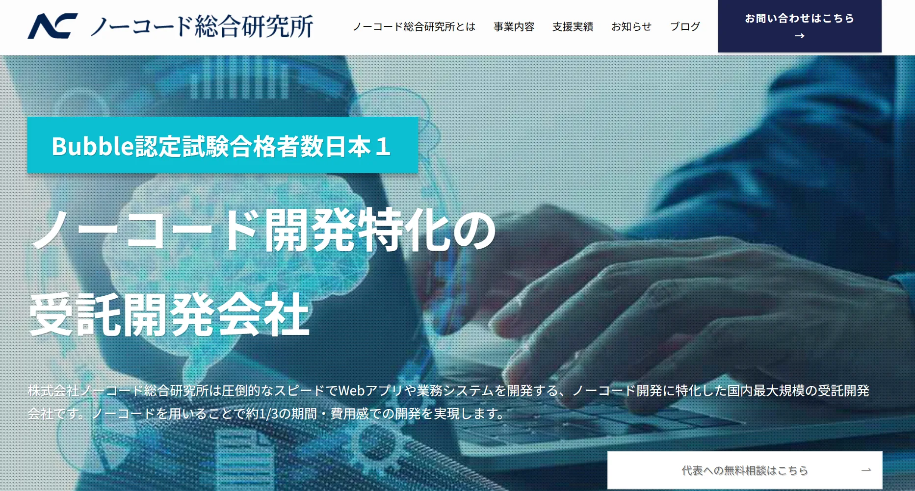 株式会社ノーコード総合研究所は、京都府京都市を拠点に活動する、ノーコード開発に特化した受託開発会社です。世界的ノーコードプラットフォーム「Bubble」の公式パートナーとしてSilver Agencyに認定され、日本でもごく限られた企業のみが持つ高い技術力と信頼性を備えています。Webアプリや業務システム、AIエージェントなど、短期間・低コストかつ高品質な開発を実現できる点が大きな強みです。