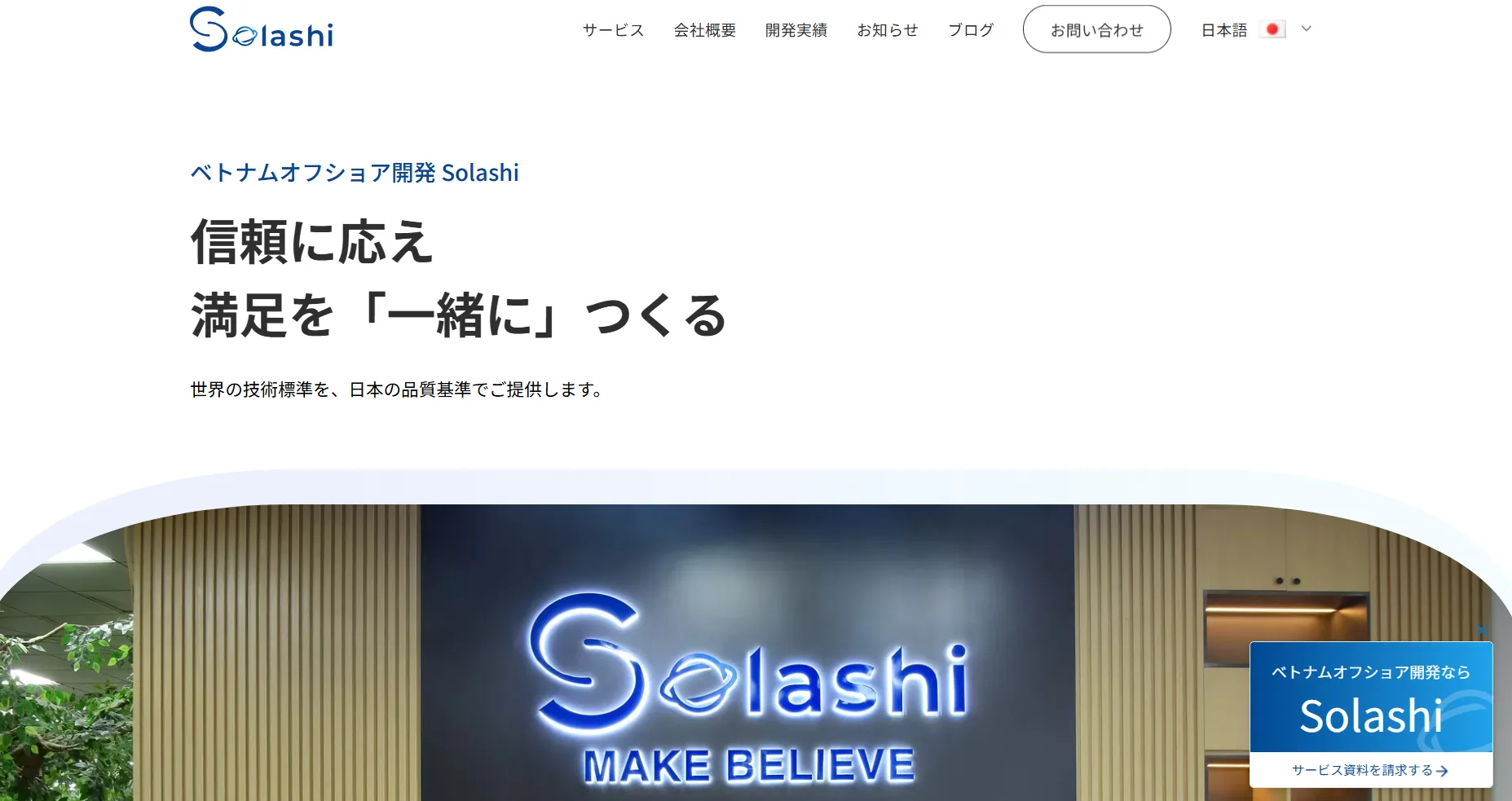 Solashiはベトナムを拠点としたオフショア開発企業です。日本企業のビジネスを深く理解し、高スキルなベトナム人エンジニアと技術に精通した日本人PMが協働する体制が強みです。柔軟な開発体制と、事業の成功を重視した提案力で、最適なコストと品質を実現します。