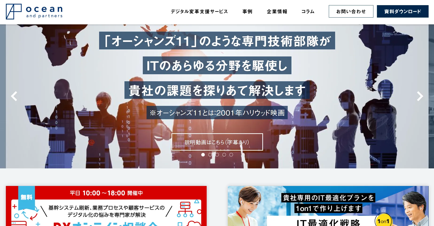 オーシャン・アンド・パートナーズは、「戦略 × 実装」で顧客の成果にコミットする S.W.A.T型のITコンサルティングチームです。少人数ながら専門性の高いメンバーが集い、大手に比べて40〜60%のコストで質の高いシステム構築を実現しています。