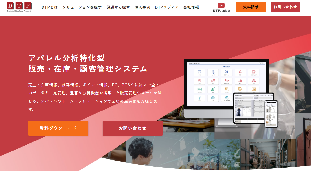 株式会社ディー・ティー・ピー(以下 DTP)は、主にアパレル業界および小売/卸売業を対象に、販売管理、在庫管理、顧客管理、POS、EC、決済までを包括するクラウド型ソリューションを提供するシステム企業です。