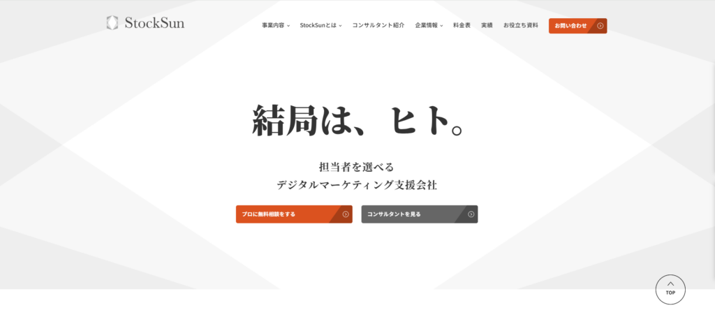 StockSun株式会社は、各分野で独立した専門家が在籍するフリーランス組織型のWebマーケティング会社です。