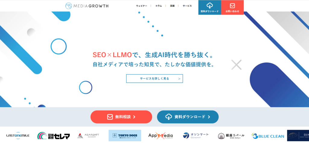 株式会社メディアグロースは、10年以上のSEOメディア運営で培ったノウハウをもとに、包括的なSEO支援を行う会社です。