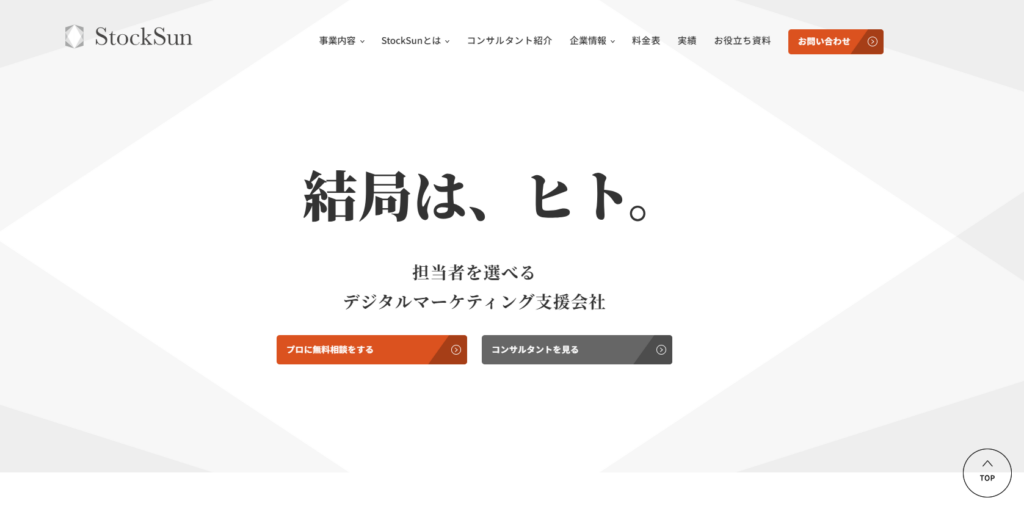 3 StockSun株式会社 StockSun株式会社はデジタルマーケティング支援のプロフェッショナル集団です。 要問い合わせ。 東京都新宿区 2018年10月 https://stock-sun.com/