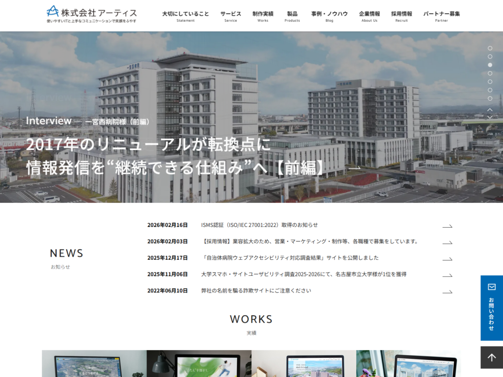 27 株式会社アーティス SEO対策、広告運用などを含む支援範囲に対応しています。 また同社は教育機関・医療機関のホームページ制作に強みがあり、大学などの教育機関、病院など医療機関のホームページの制作実績を多数保有。 静岡県浜松市中区 公式サイトよりお問い合わせください https://www.asobou.co.jp/
