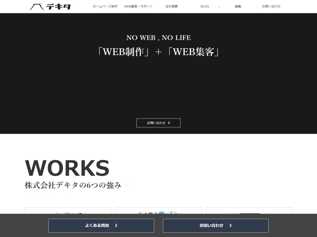 9 株式会社デキタ SEO対策、MEO対策などを含む支援範囲に対応しています。 6つの強み静岡県のホームページ制作会社「株式会社デキタ」です。 静岡県富士市 2015年10月1日 https://dekita.net/