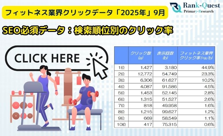 累計4,300社以上のSEO支援実績を持つランクエスト(https://rank-quest.jp/column/column/how-to-seo/ )では、2025年9月にフィットネス分野のクライアントサイトを対象とした、検索順位別クリック率(CTR)に関する独自調査を実施しました。