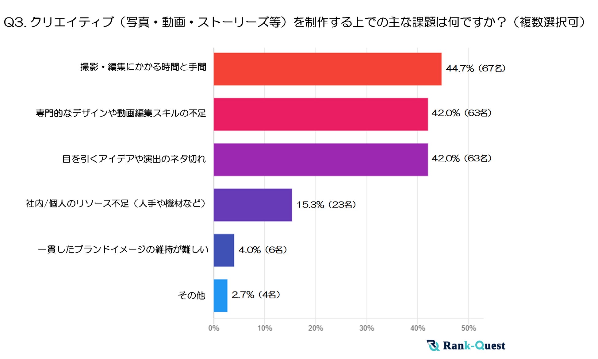 ・調査③:クリエイティブ(写真・動画・ストーリーズ等)を制作する上での主な課題