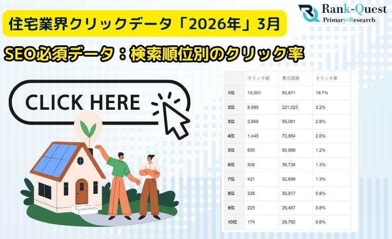 SEO支援の実績が4,300社を超えるランクエスト(https://rank-quest.jp/column/column/how-to-seo/)では、2026年3月に住宅業界のWebサイトを対象とした「検索順位ごとのクリック率(CTR)」に関する調査を実施いたしました。