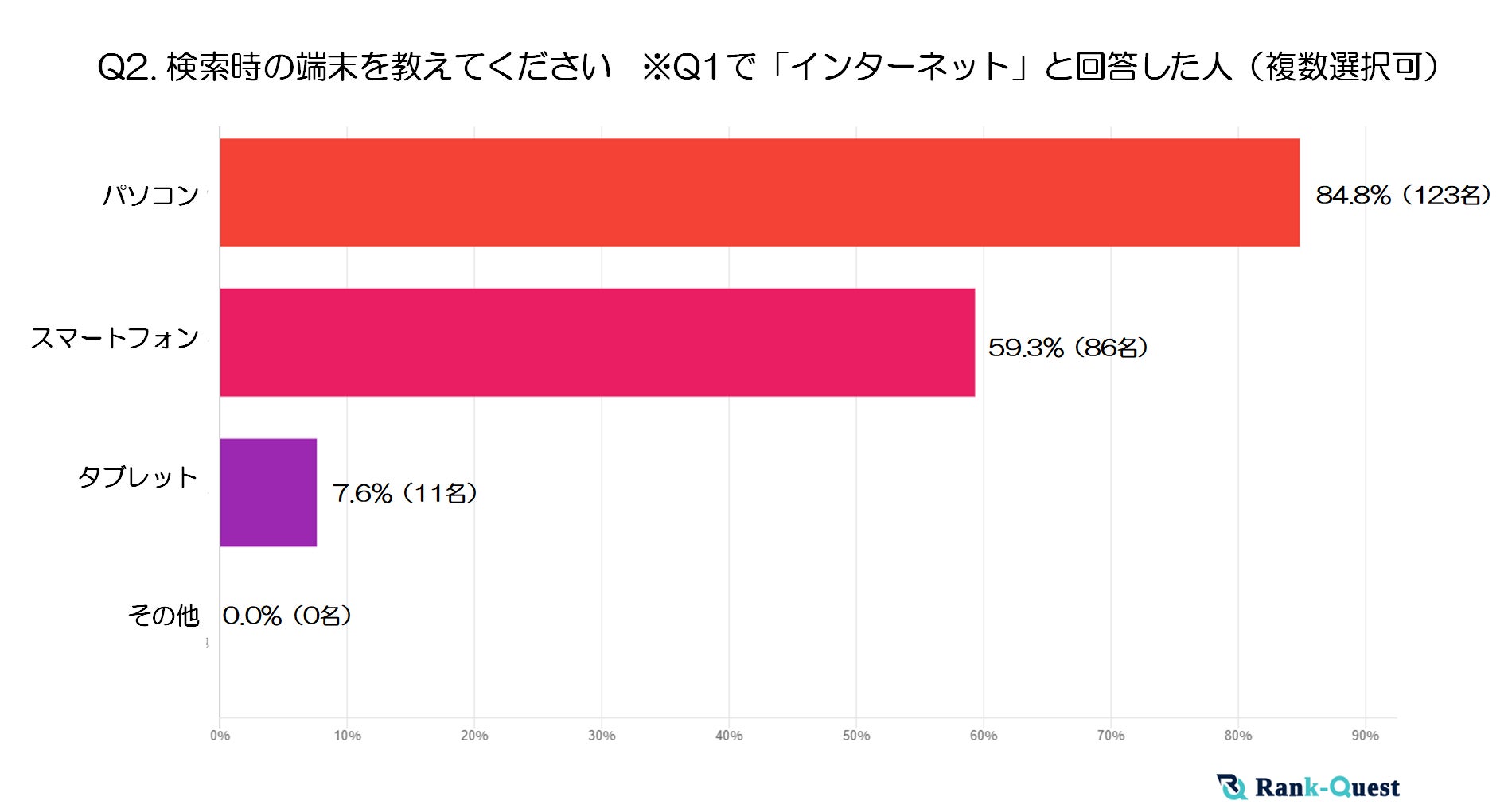 調査結果➁ 検索時の端末を教えてください ※Q1で「インターネット」と回答した人(複数選択可)