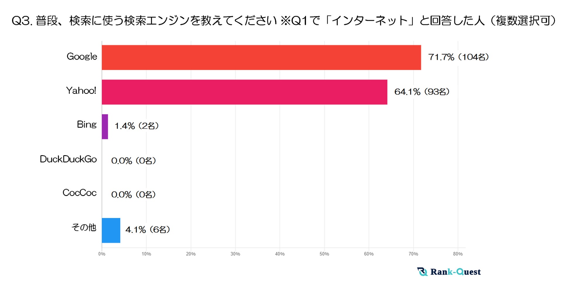 最も利用されているのは「Google」で、回答者の71.7%が使用していると答えました。