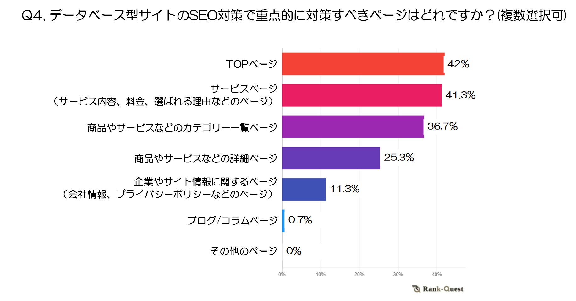 調査結果④ データベース型サイトのSEO対策で重点的に対策すべきページはどれですか?(複数選択可)