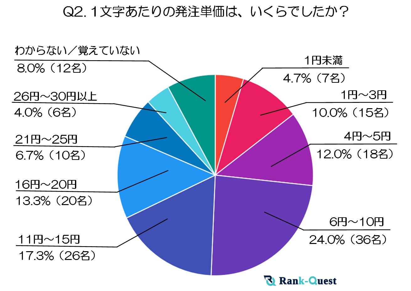 調査結果➁:1文字あたりの発注単価は、いくらでしたか?