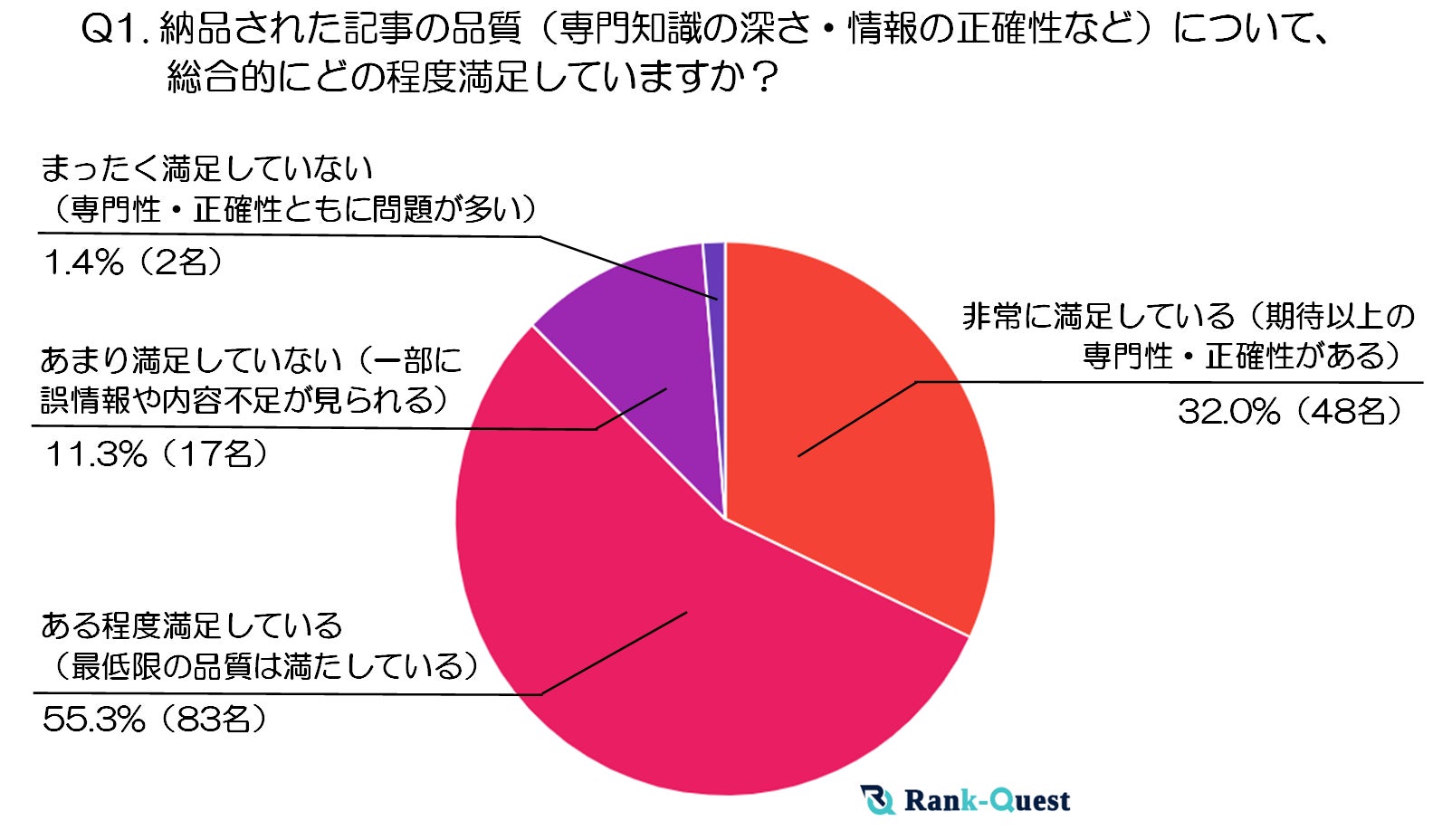 調査結果①:納品された記事の品質(専門知識の深さ・情報の正確性など)について、総合的にどの程度満足していますか?