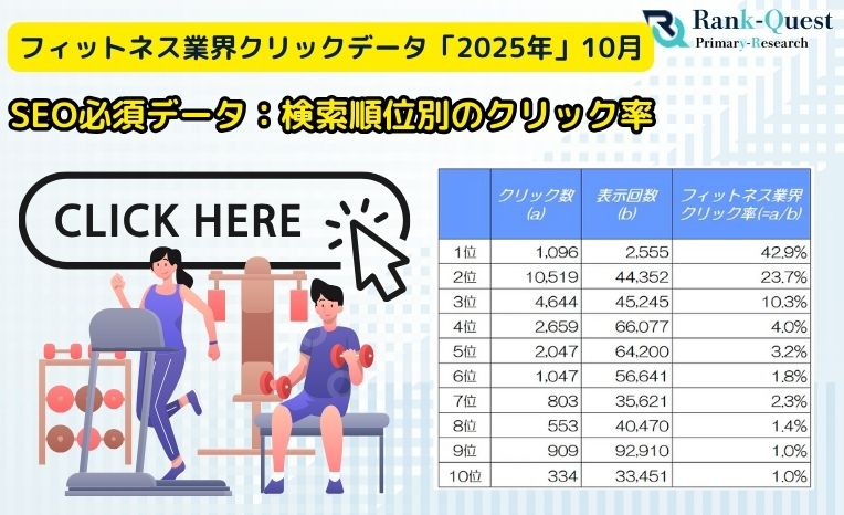 累計4,300社以上のSEO支援実績を持つランクエスト(https://rank-quest.jp/column/column/how-to-seo/)では、2025年10月にフィットネス分野のクライアントサイトを対象とした、検索順位別クリック率(CTR)に関する独自調査を行いました。