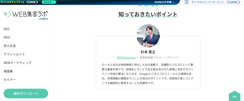 WEB集客ラボ byGMO様が発信する「ローカルSEOとは?SEO・MEOとの違いや効果・メリット、基本的な対策ポイントと注意点を解説」